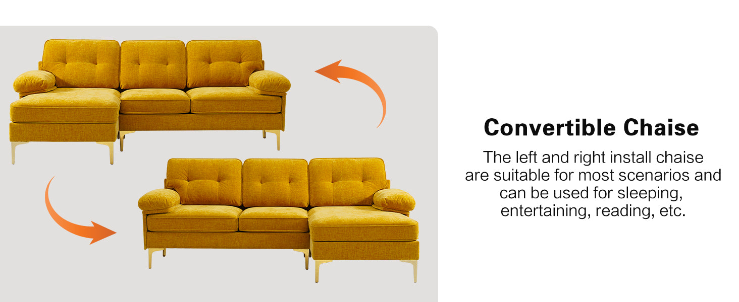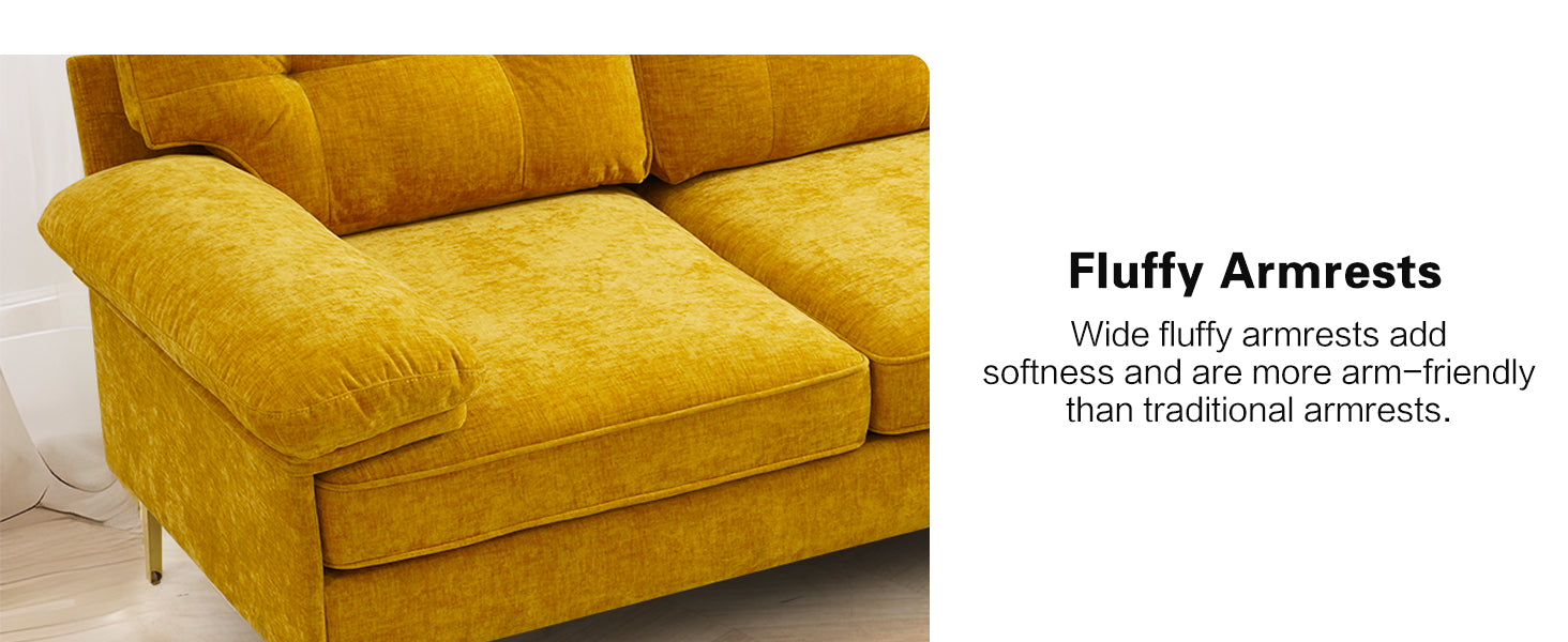 [Comfortable cushion]Β The cushion of the combination sofa uses a softer and more flexible sponge material. The sofa cushion is filled with high-quality cotton, which is soft and resilient. Modern Chenille cushion fabric is soft and breathable.The deepened cushion gives you plenty of room to read or watch a movie.