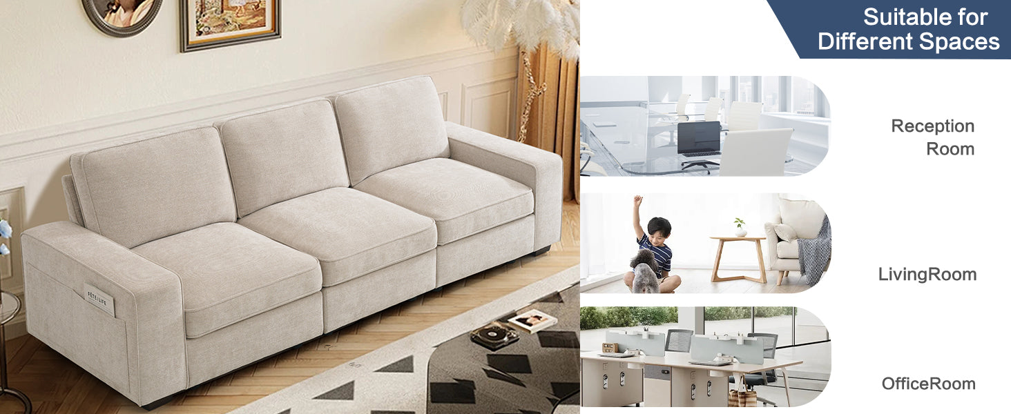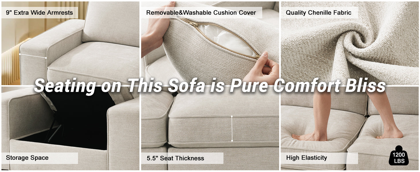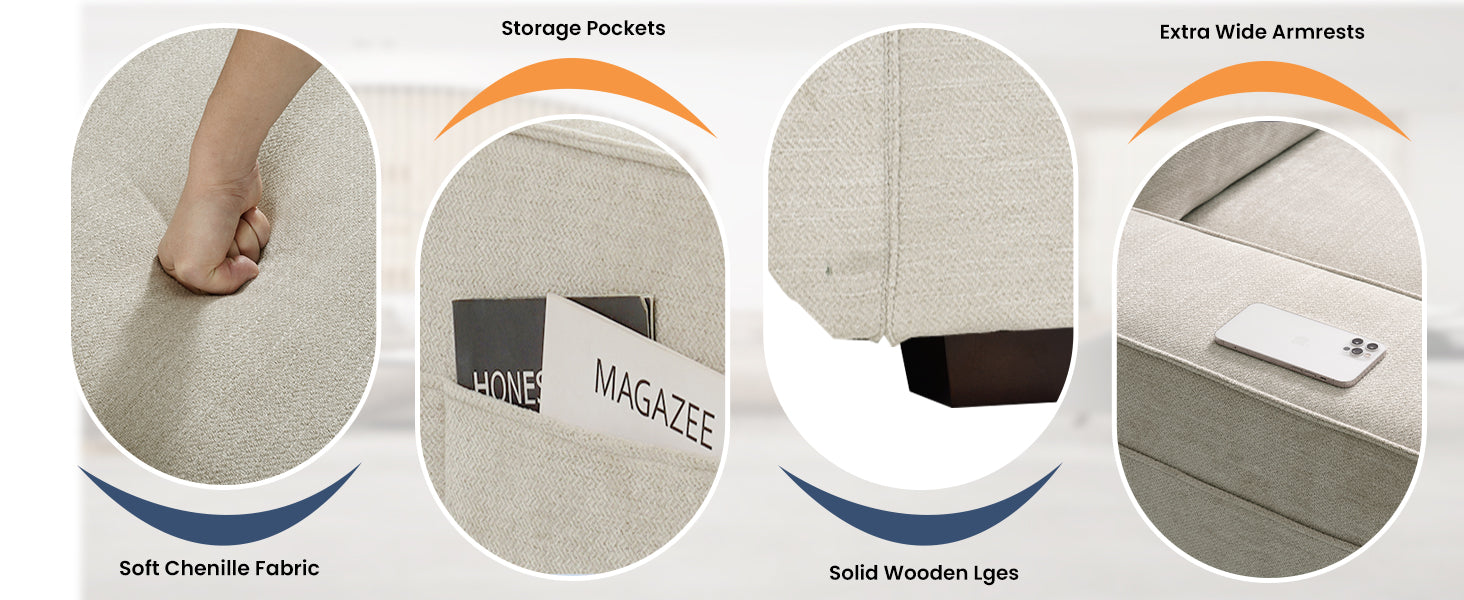 【Storage underneath Each Seat】Every storage space is 26" × 29" × 6.5". The hidden storage can keep your blankets, pillows, books, and other kinds of stuff, making your space tidier. The more seats you buy, the more storage space you own. Besides, the side pockets out of the dual armrests also provide you with extra space for small things such as remote controls or magazines.