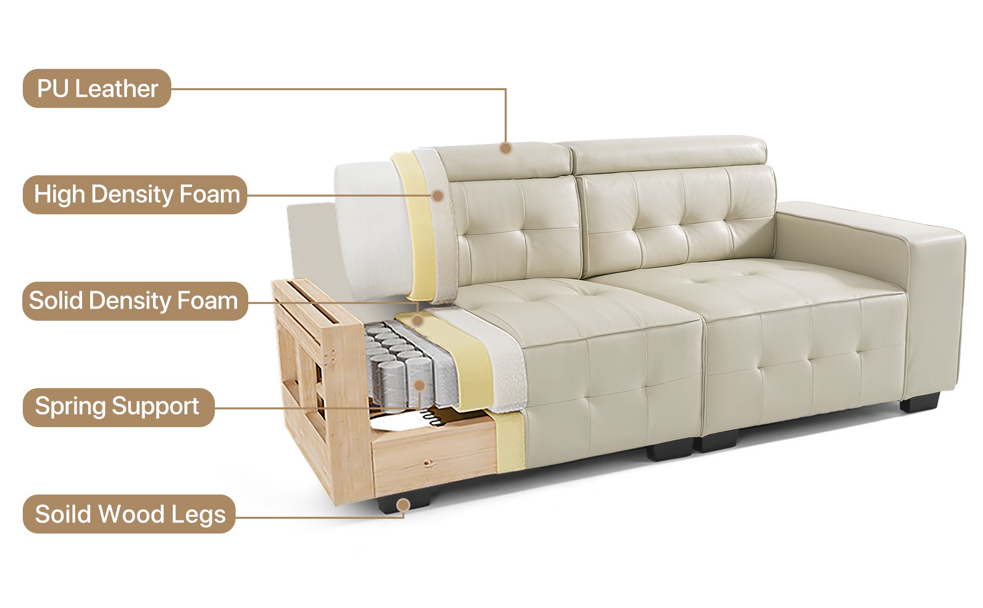[ High quality PU Leather ] The PU leather known for its durability and easy maintenance, the sofa offers a sleek and polished look without compromising on durability. roviding a long-lasting and practical seating solution..