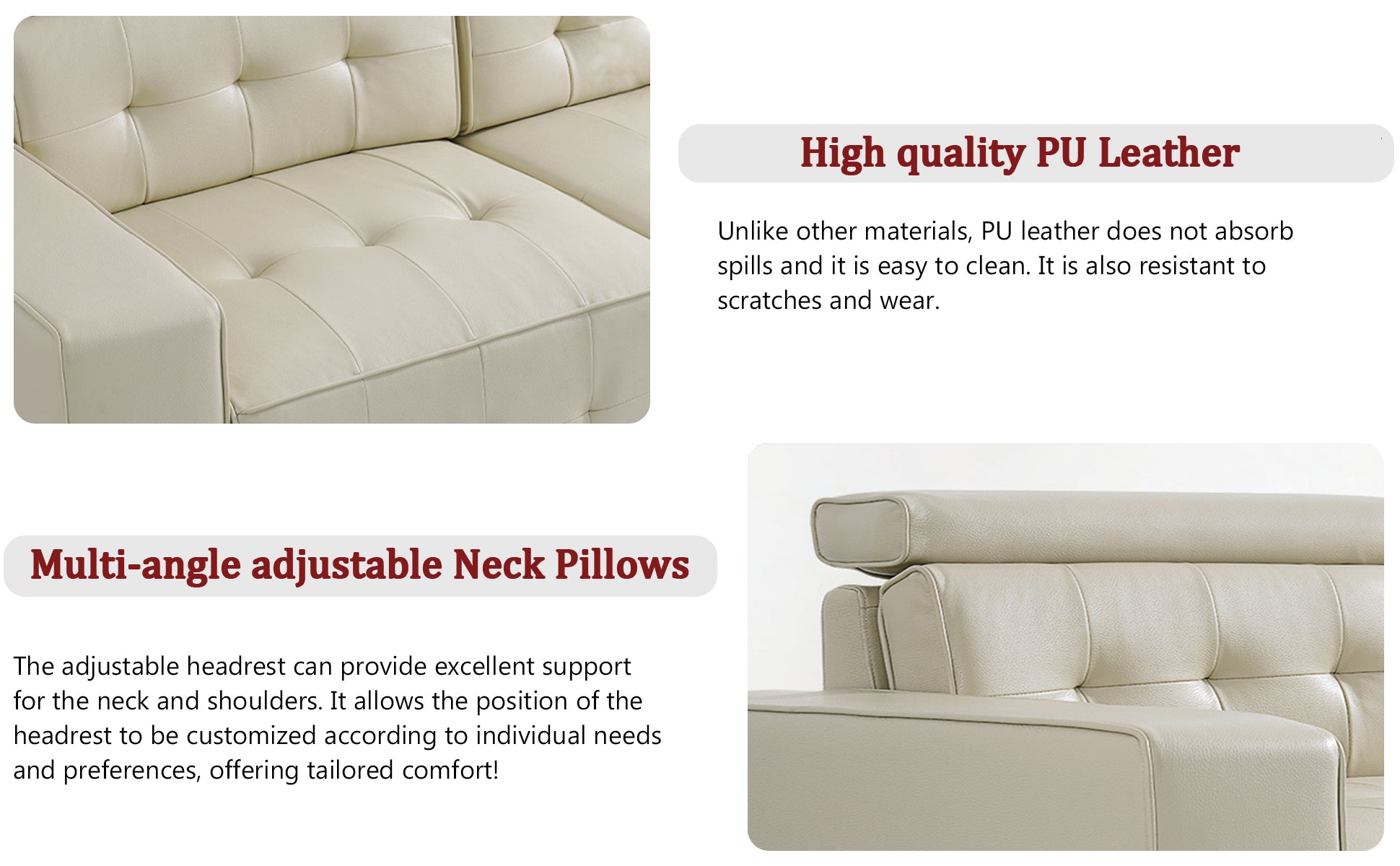 [ Adjustable Neck Pillows ] The headrest of the sofa can be adjusted to 90-180°. Ergonomic fluffy backrest and headrest support your neck, shoulders, hips and lower back to release the pressure on your spine